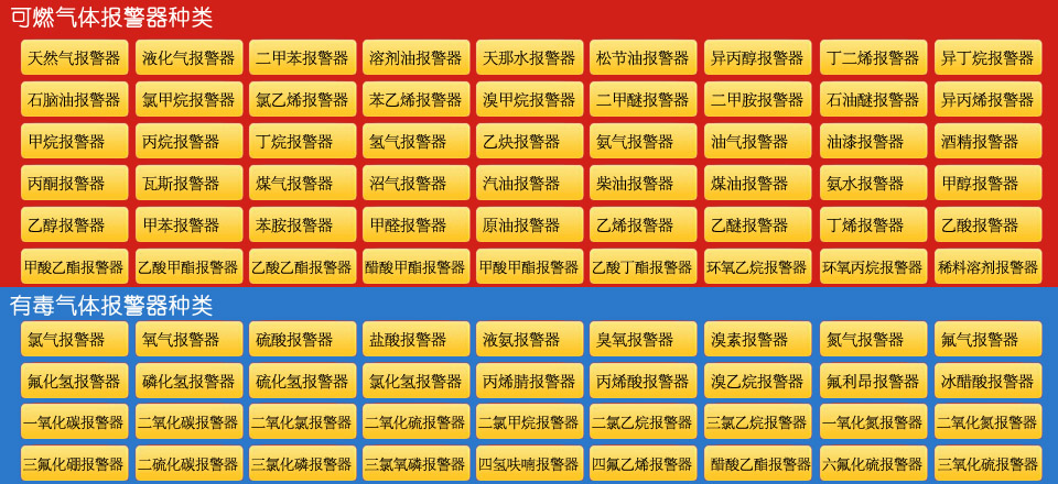 天然氣氣體報警器液化氣氣體報警器 二甲苯氣體報警器 溶劑油氣體報警器天那水氣體報警器松節油氣體報警器 異丙醇氣體報警器 丁二烯氣體報警器 異丁烷氣體報警器石腦油氣體報警器 氯甲烷氣體報警器 氯乙烯氣體報警器苯乙烯氣體報警器溴甲烷氣體報警器二甲醚氣體報警器 二甲胺氣體報警器 石油醚氣體報警器 異丙烯氣體報警器 甲烷氣體報警器 丙烷氣體報警器 丁烷氣體報警器 氫氣氣體報警器乙炔氣體報警器 氨氣氣體報警器 油氣氣體報警器油漆氣體報警器酒精氣體報警器丙酮氣體報警器瓦斯氣體報警器 煤氣氣體報警器 沼氣氣體報警器 汽油氣體報警器 柴油氣體報警器煤油氣體報警器 氨水氣體報警器 甲醇氣體報警器 乙醇氣體報警器 甲苯氣體報警器 苯胺氣體報警器甲醛氣體報警器原油氣體報警器 乙烯氣體報警器 乙醚氣體報警器異丁烯氣體報警器乙酸氣體報警器 甲酸乙酯氣體報警器 乙酸甲酯氣體報警器 乙酸乙酯氣體報警器 醋酸甲酯氣體報警器甲酸甲酯氣體報警器乙酸丁酯氣體報警器環氧乙烷氣體報警器 環氧丙烷氣體報警器稀料溶劑氣體報警器 氯氣氣體報警器氧氣氣體報警器 硫酸氣體報警器 鹽酸氣體報警器 液氨氣體報警器 臭氧氣體報警器 溴素氣體報警器氮氣氣體報警器 氟氣氣體報警器 氟化氫氣體報警器 磷化氫氣體報警器硫化氫氣體報警器 氯化氫氣體報警器 丙烯腈氣體報警器 丙烯酸氣體報警器 溴乙烷氣體報警器 氟利昂氣體報警器 冰醋酸氣體報警器一氧化碳氣體報警器二氧化碳氣體報警器 二氧化氯氣體報警器二氧化硫氣體報警器 二氯甲烷氣體報警器二氯乙烷氣體報警器三氯乙烷氣體報警器 一氧化氮氣體報警器二氧化氮氣體報警器三氟化硼氣體報警器二硫化碳氣體報警器 三氯化磷氣體報警器 三氯氧磷氣體報警器 四氫呋喃氣體報警器四氟乙烯氣體報警器 醋酸乙酯氣體報警器六氟化硫氣體報警器 三氧化硫氣體報警器